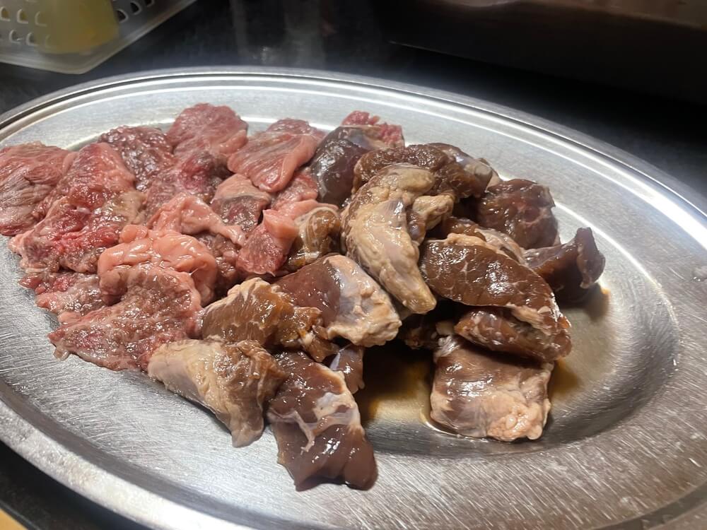 ジンギスカンだけでなく、焼肉メニューも侮れません。特にカルビとざかりは絶品でした。カルビは脂と赤身のバランスが絶妙で、ジューシーな旨味が口いっぱいに広がります。一方、ざかりは牛の横隔膜周辺の部位で、ハラミに近い味わいが特徴。柔らかさと濃厚な旨味がクセになる一品で、ここでしか味わえない特別感がありました。「ジンギスカン × カルビ × ざかり」という夢のような組み合わせは、肉好きにとって至福の時間を提供してくれます。