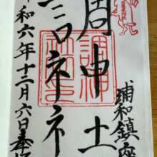 墨書の下部には、赤い角印が押されています。この朱印は七社神社の正式な印章であり、古印風のデザインが特徴です。内部の線は細かく、長い歴史を感じさせる趣があります。この朱印が加わることで、御朱印全体に重厚感が生まれています。